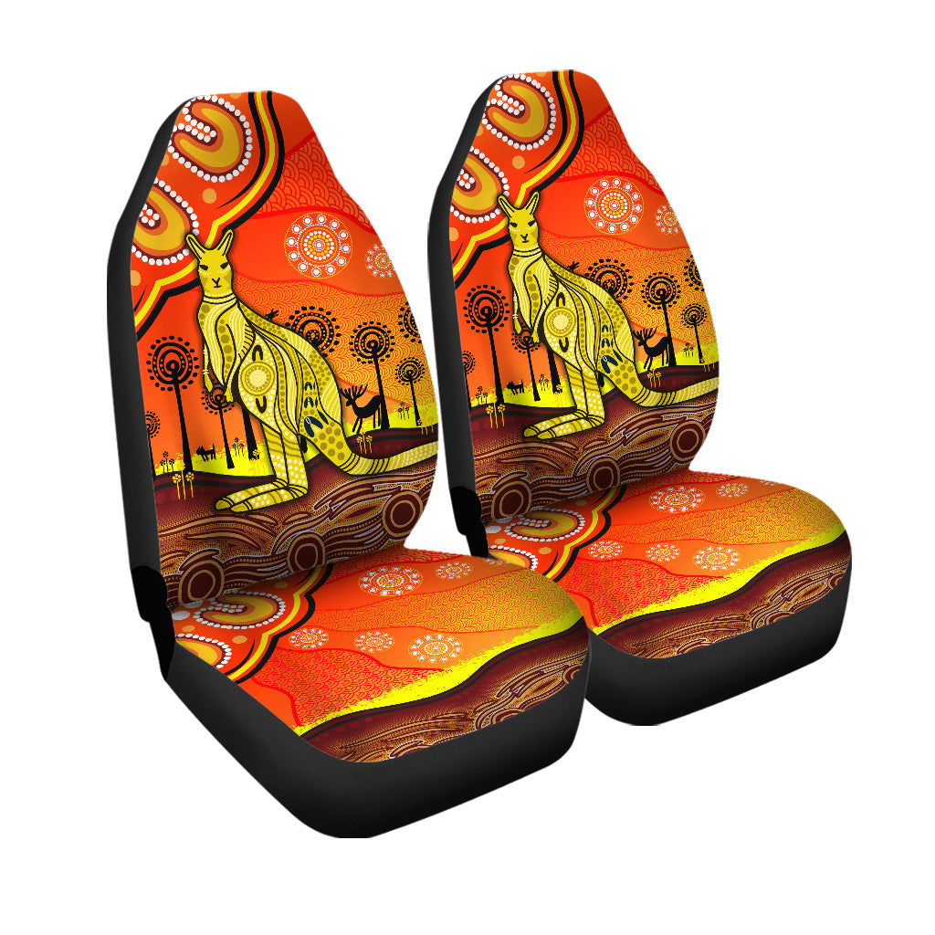 Aboriginal Art Kangaroo Car Seat Cover Indigenous Unique Vibes - Orange LT8