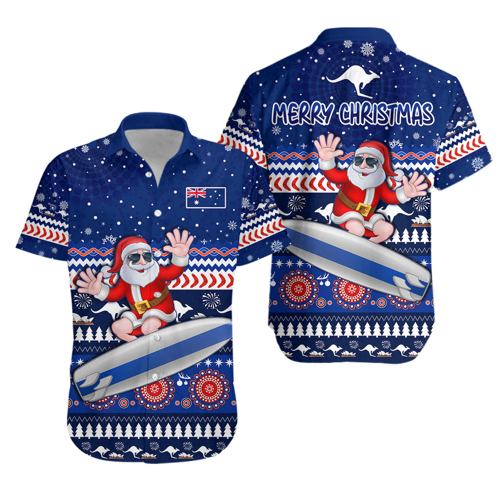 Australia Christmas Hawaiian Shirt Aussie Aboriginal Santa Claus is Surfing with Kangaroo LT13
