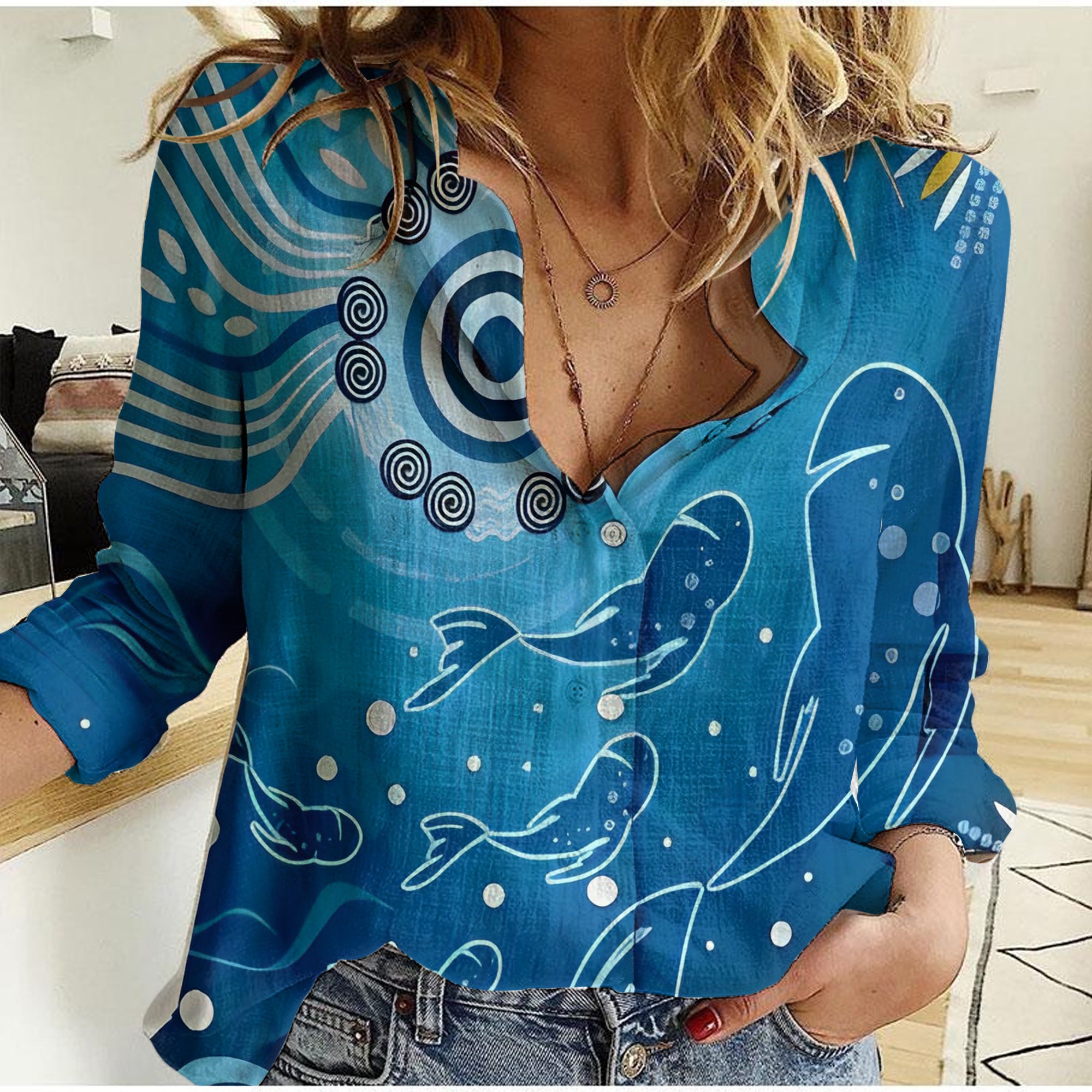 Australia Indigenous Women Casual Shirt Blue Sea RLT14