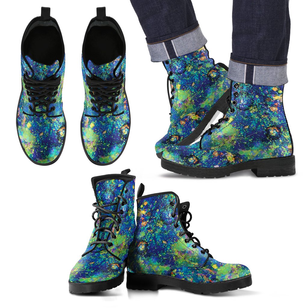 Australia Men Leather Boots - Opal Gemstone Shoes Colors Art