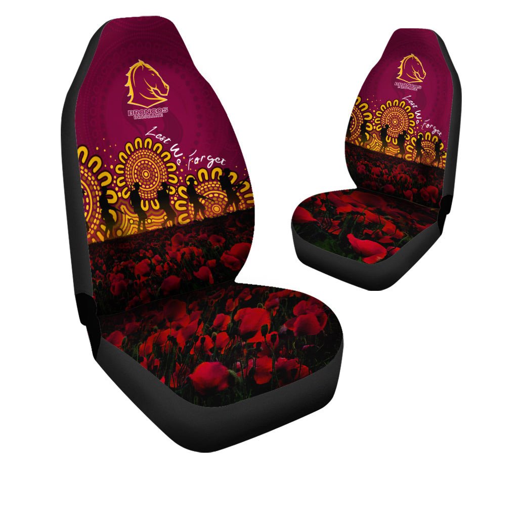 Brisbane Broncos Car Seat Covers Aboriginal Rugby Anzac Day Poppy With Soldiers- NRL LT10