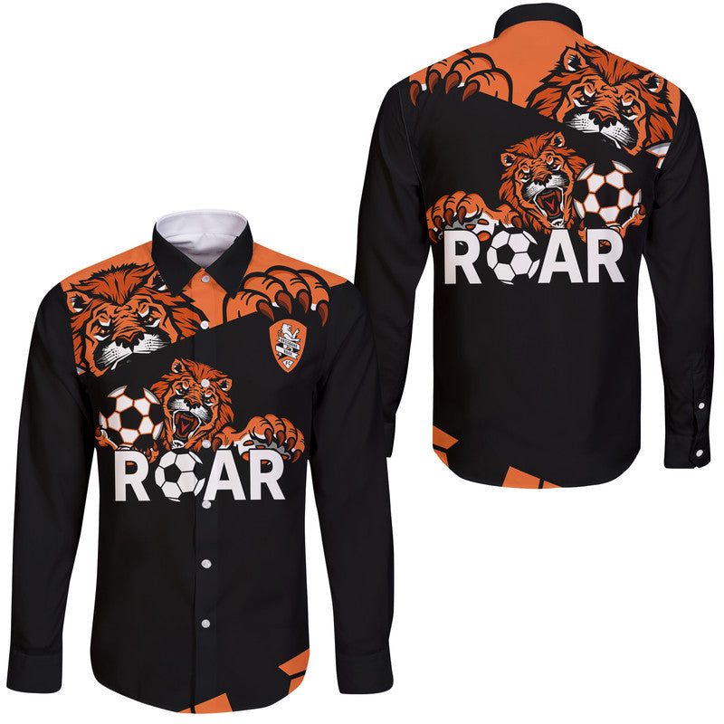 Brisbane Roar Soccer Hawaii Long Sleeve Button Shirt The Roar Mascot LT9
