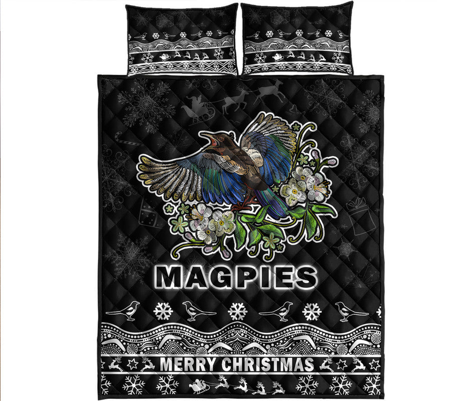 Collingwood Pies Unique Winter Season Quilt Bed Set Magpies Merry Christmas No1 LT9