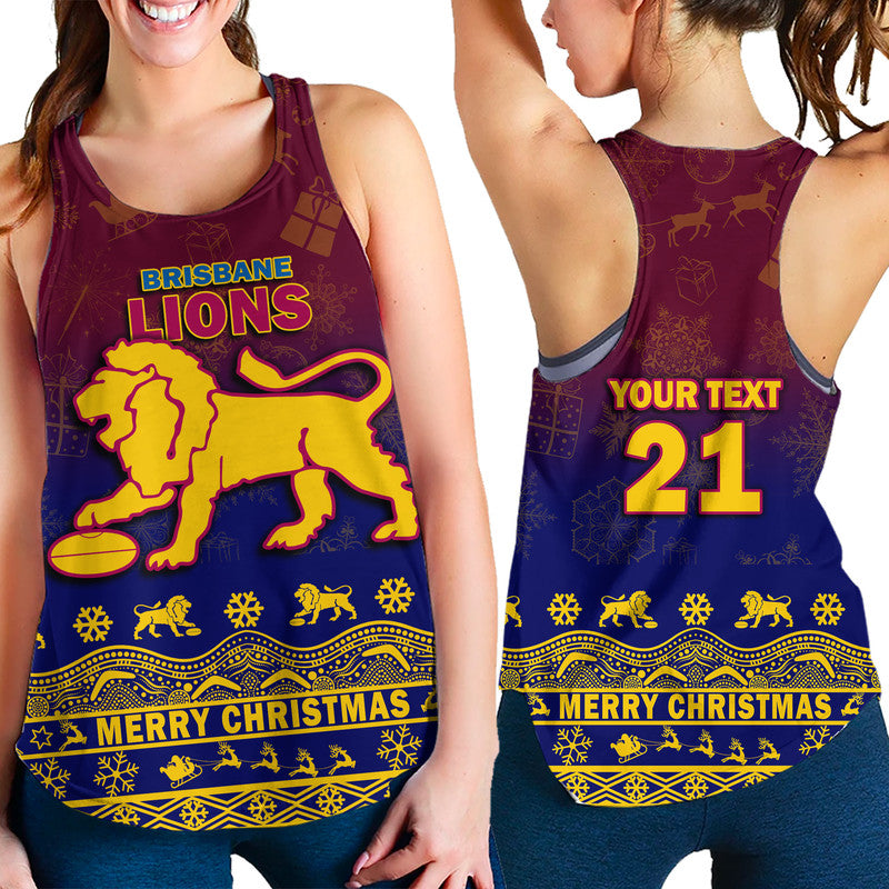 (Custom Personalised And Number) Brisbane Unique Lions Winter Season Women Racerback Tank Lions Merry Christmas LT9