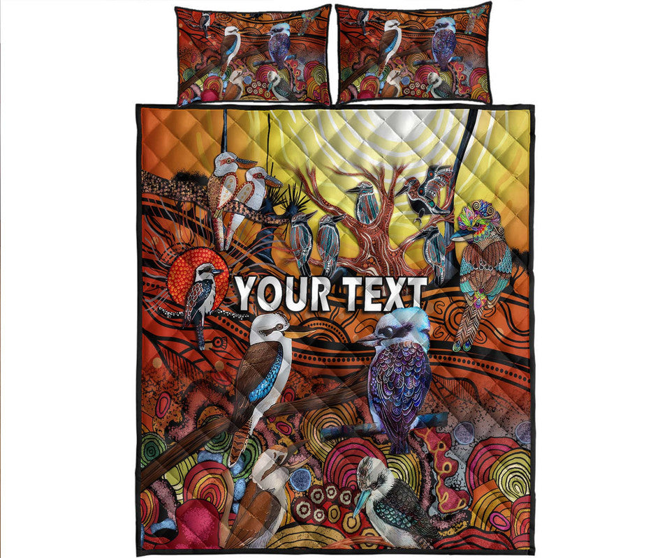 (Custom Personalised) Australia Kookaburra Dreaming Aboriginal Arty Style Quilt Bed Set LT9