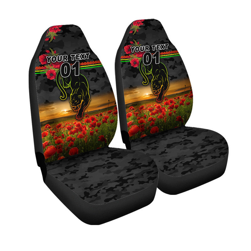 (Custom Personalised) Penrith Panthers ANZAC 2022 Car Seat Cover Poppy Flowers Vibes - Black LT8