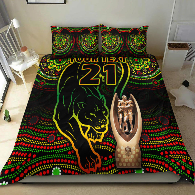 (Custom Personalised) Penrith Panthers Rugby Bedding Set Black Crouching Panther Premiers 2022 LT9