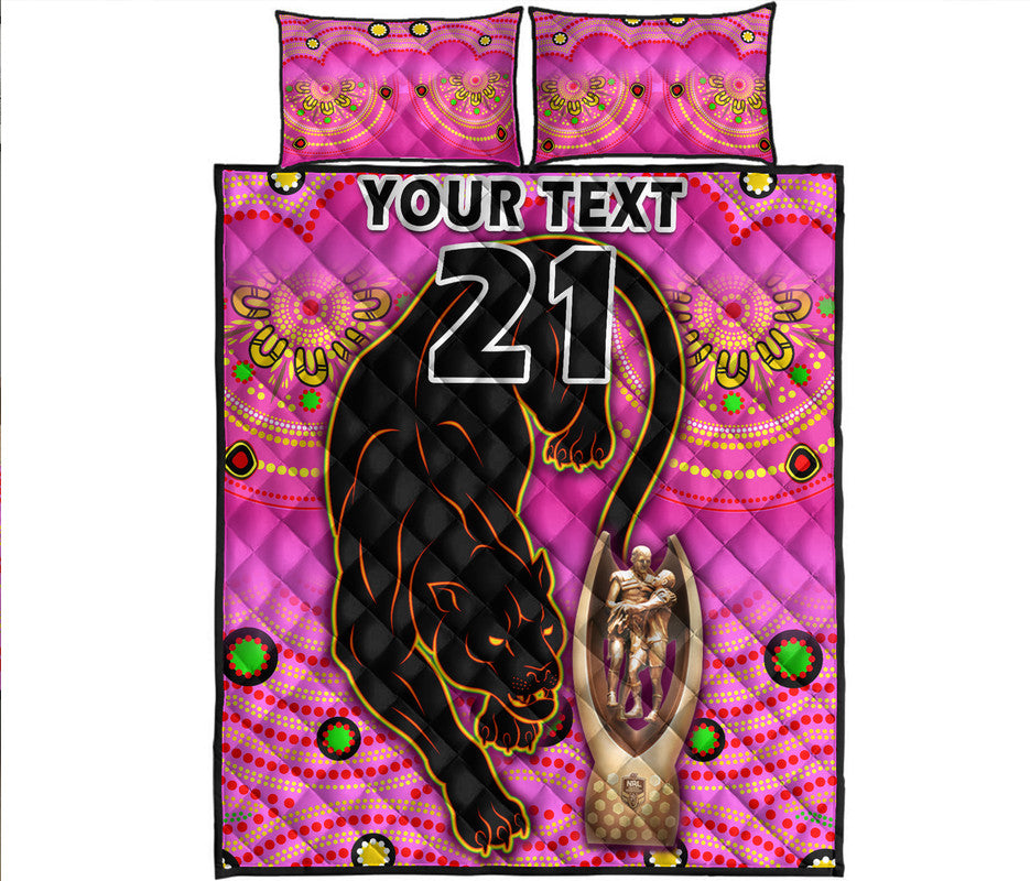 (Custom Personalised) Penrith Panthers Rugby Quilt Bed Set Pink Crouching Panther Premiers 2022 LT9