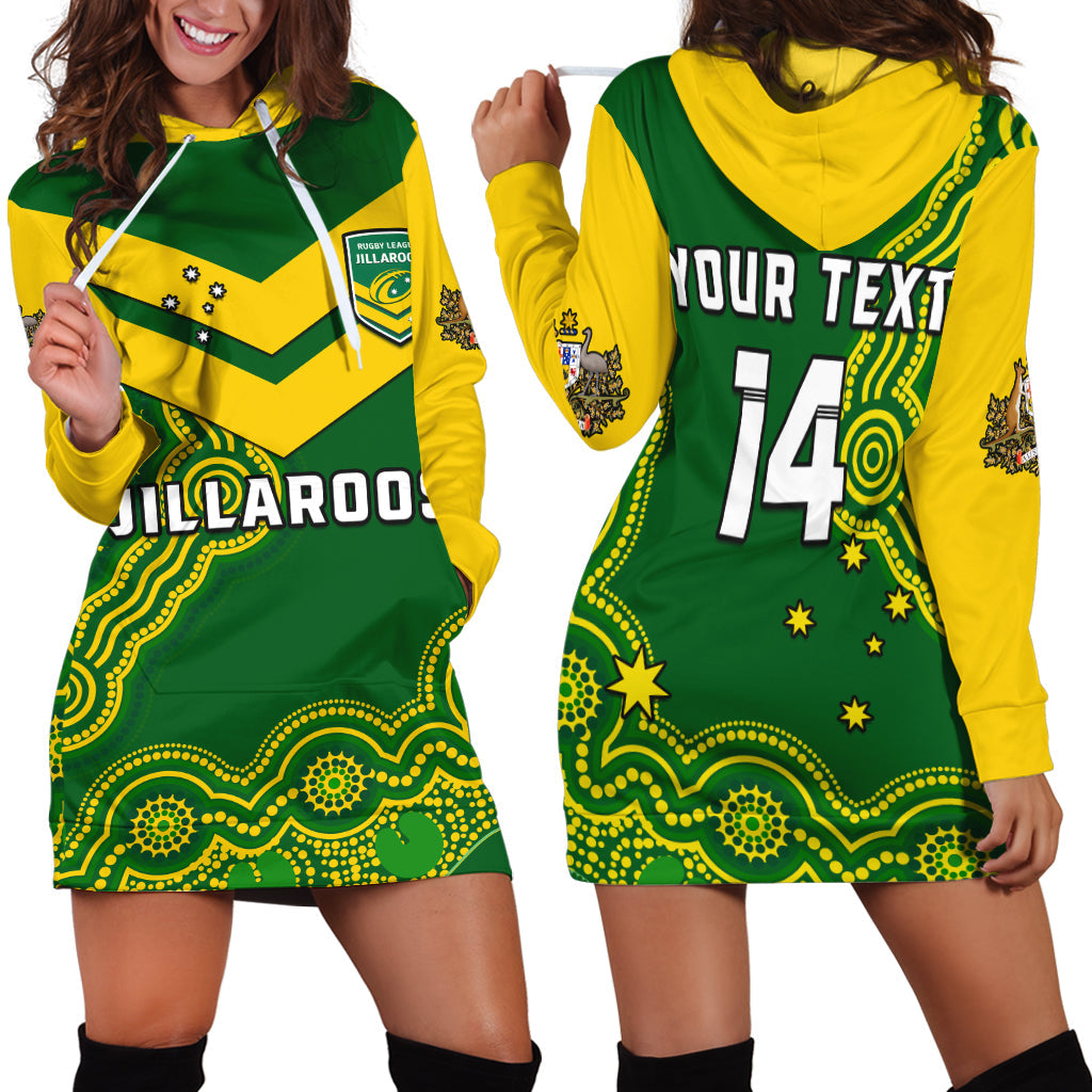 (Custom Text And Number) Australia Rugby Hoodie Dress Jillaroos Champions Indigenous Green Style LT14