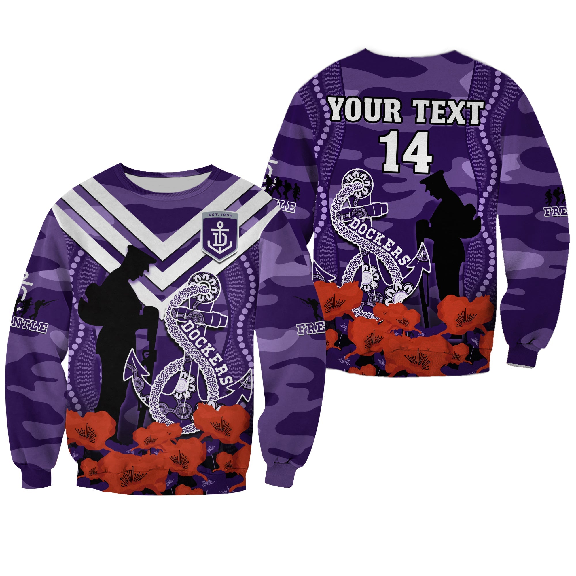 (Custom Text And Number) Dockers Football ANZAC 2023 Sweatshirt Aboriginal Mix Poppy Camouflage LT14