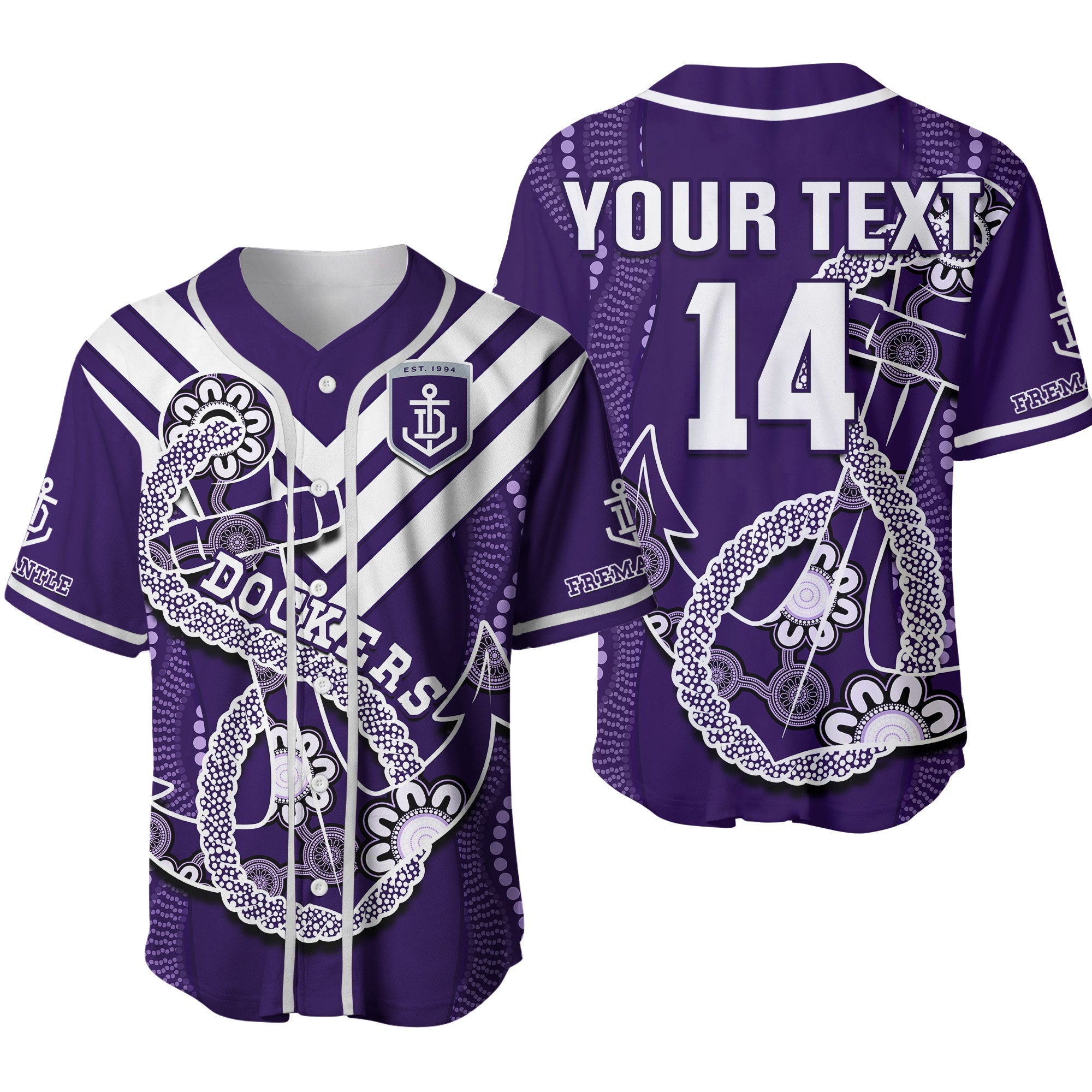 (Custom Text And Number) Dockers Football Baseball Jersey Fremantle Anchor Mix Aboriginal Pattern Dynamic Style Ver.02 LT14