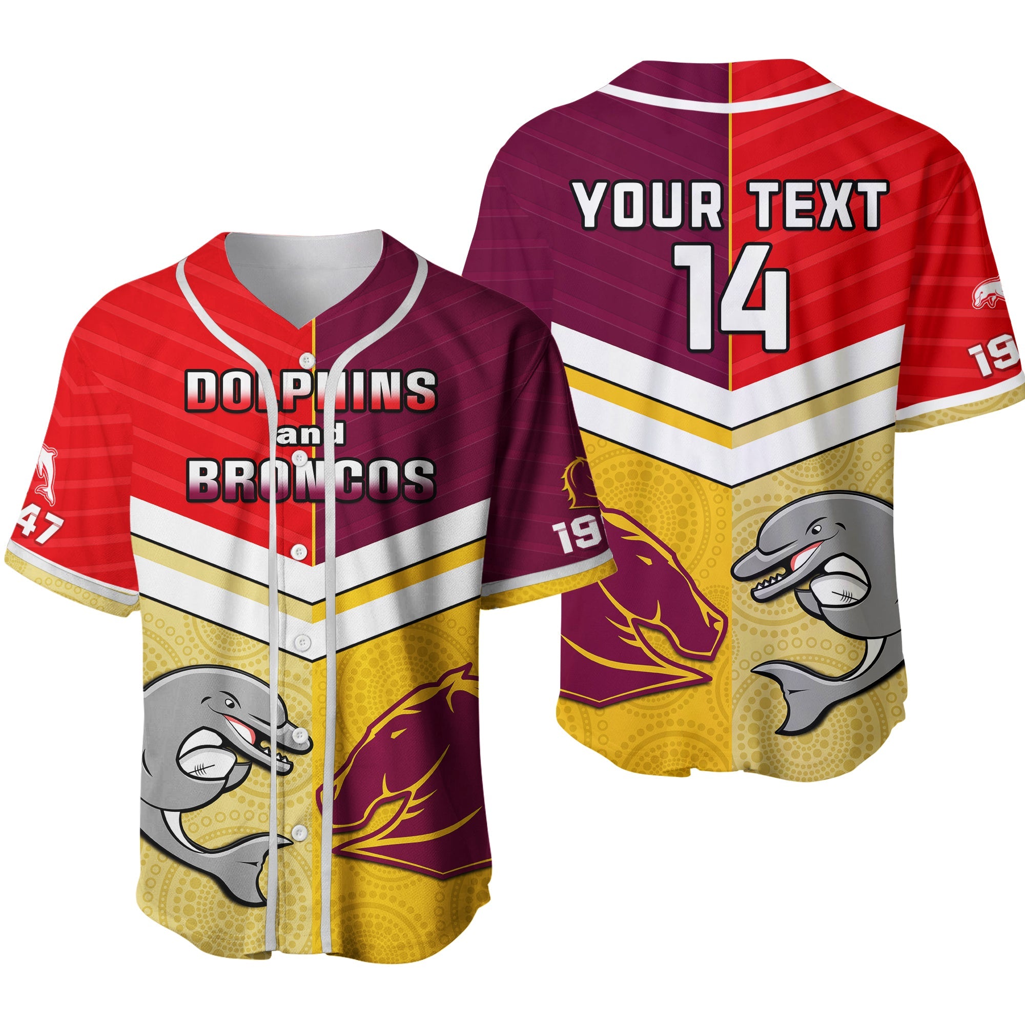 (Custom Text And Number) Dolphins Mix Broncos Rugby Baseball Jersey Indigenous Art Ver.02 LT14