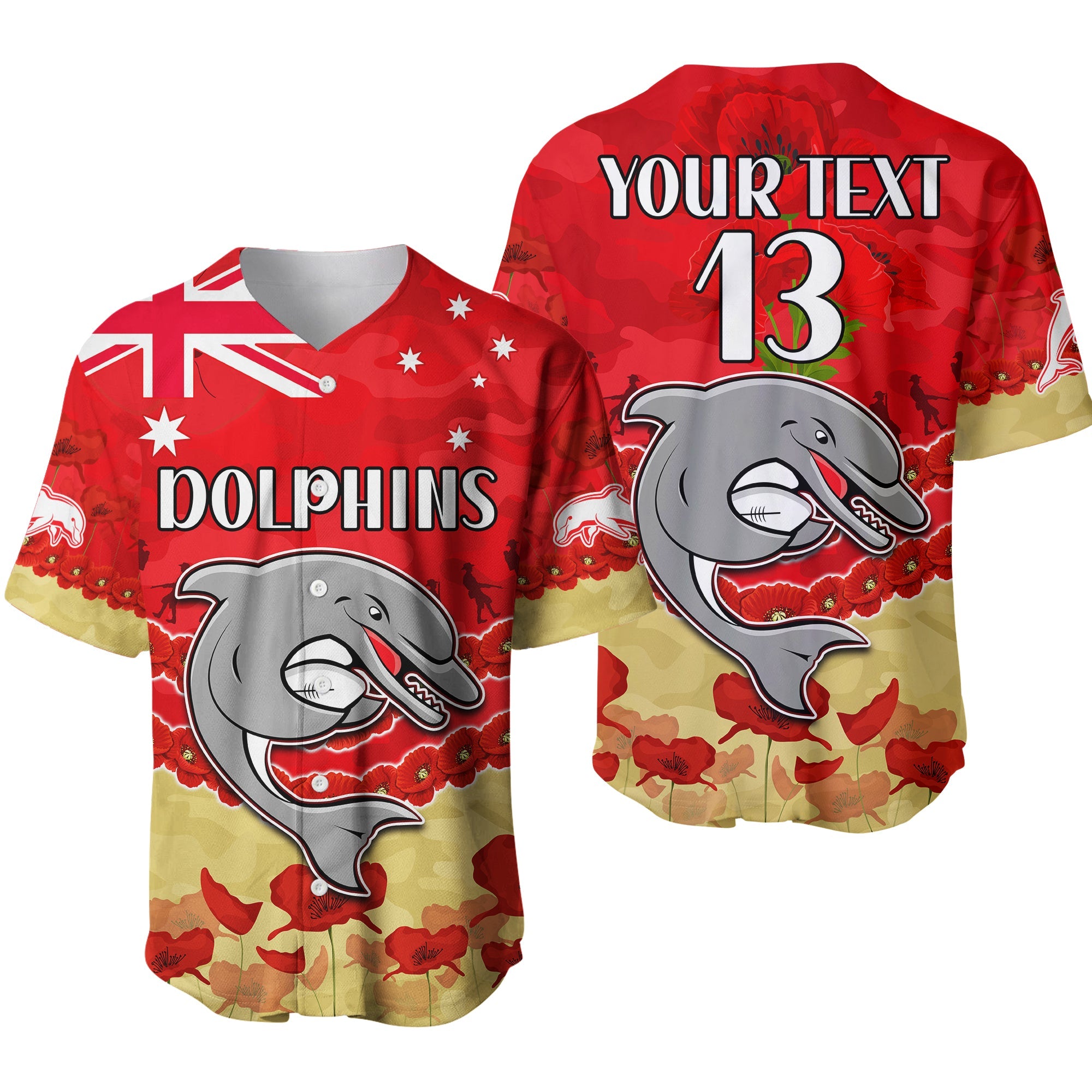 (Custom Text and Number) Dolphins Rugby Baseball Jersey ANZAC Day Lest We Forget LT13