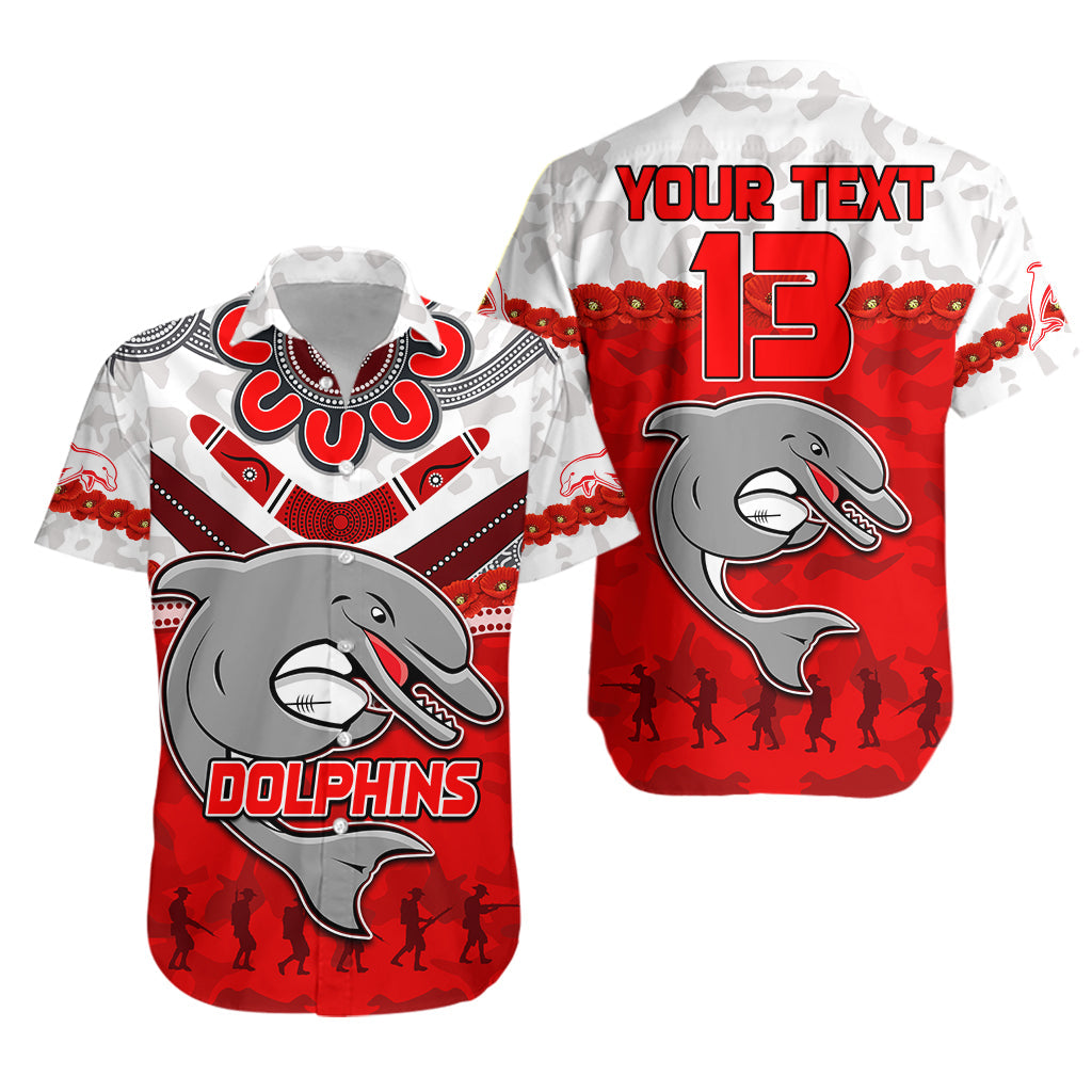 (Custom Text and Number) Dolphins Rugby Hawaiian Shirt ANZAC Day Poppy Aboriginal LT13