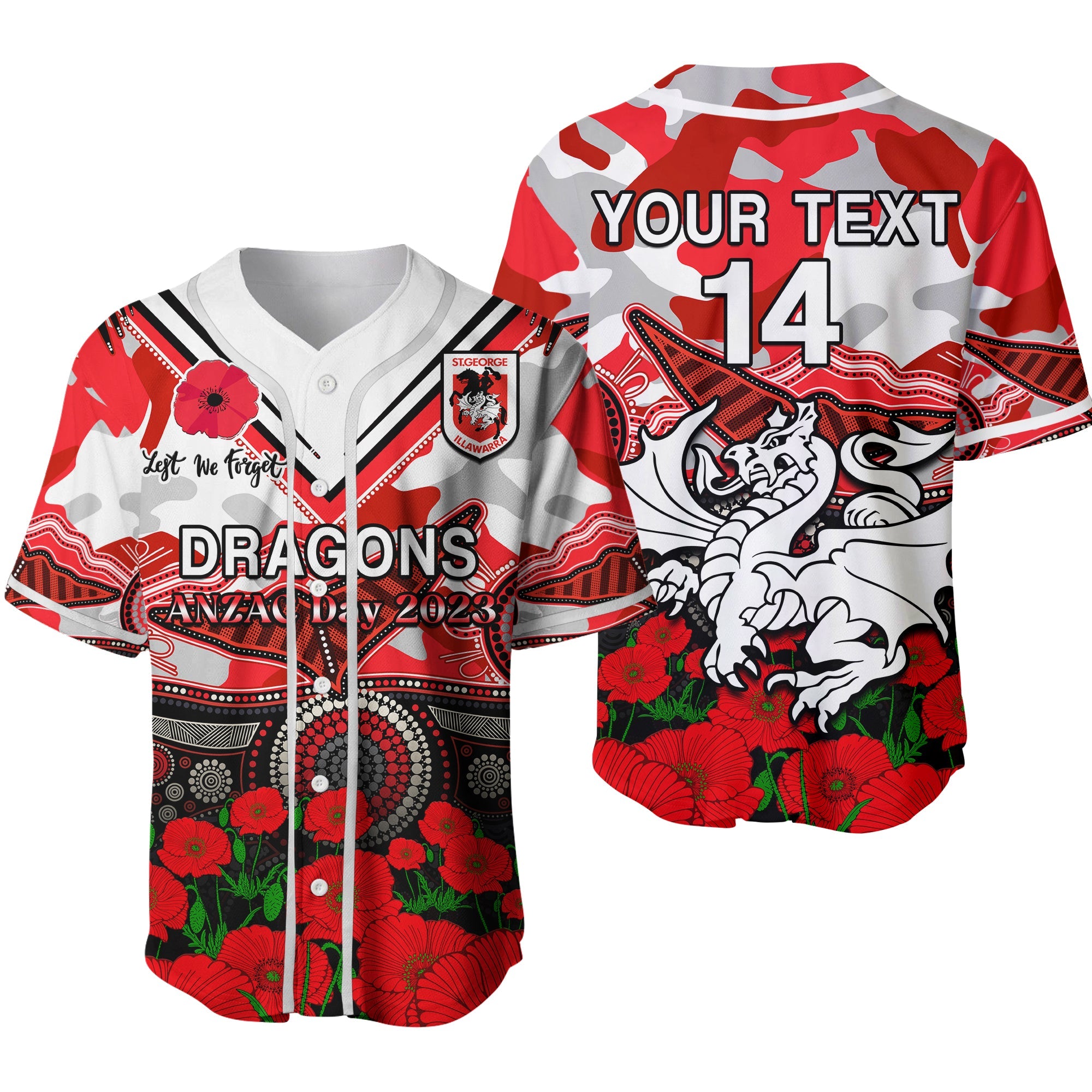 (Custom Text And Number) Dragons Rugby ANZAC 2023 Baseball Jersey Aboriginal Mix Poppy Lest We Forget Ver.02 LT14