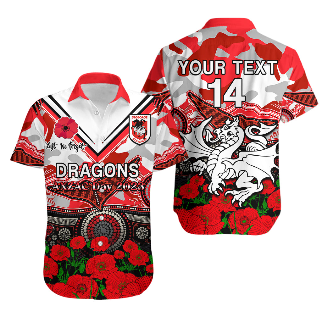 (Custom Text And Number) Dragons Rugby ANZAC 2023 Hawaiian Shirt Aboriginal Mix Poppy Lest We Forget LT14