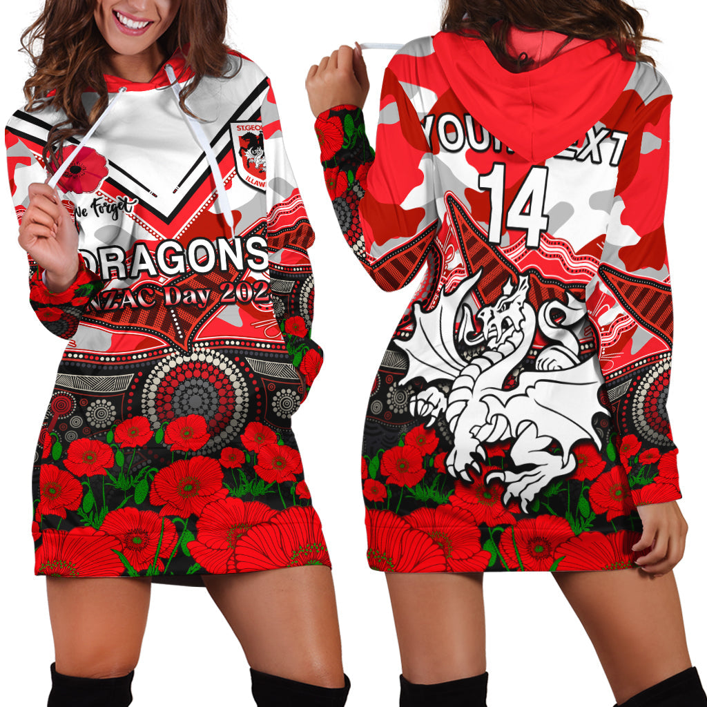 (Custom Text And Number) Dragons Rugby ANZAC 2023 Hoodie Dress Aboriginal Mix Poppy Lest We Forget LT14