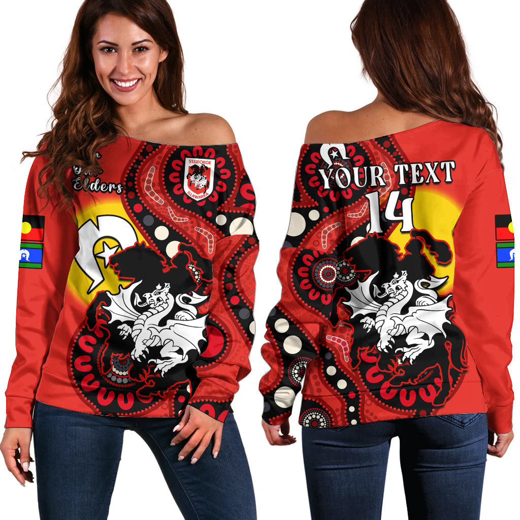 (Custom Text And Number) Dragons Rugby NAIDOC 2023 Off Shoulder Sweater For Our Elders Aboriginal LT14