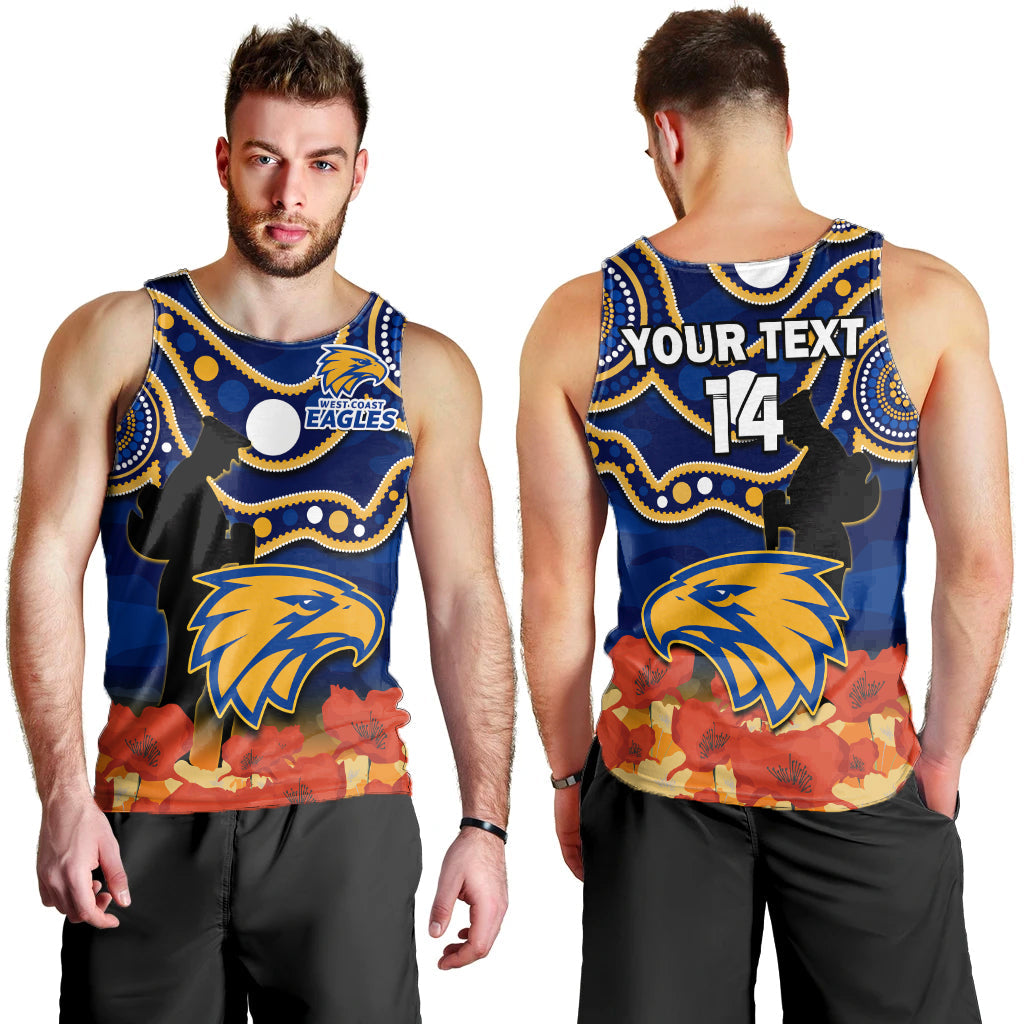 (Custom Text And Number) Eagles Football ANZAC 2023 Men Tank Top West Coast Indigenous Mix Poppy Camouflage LT14