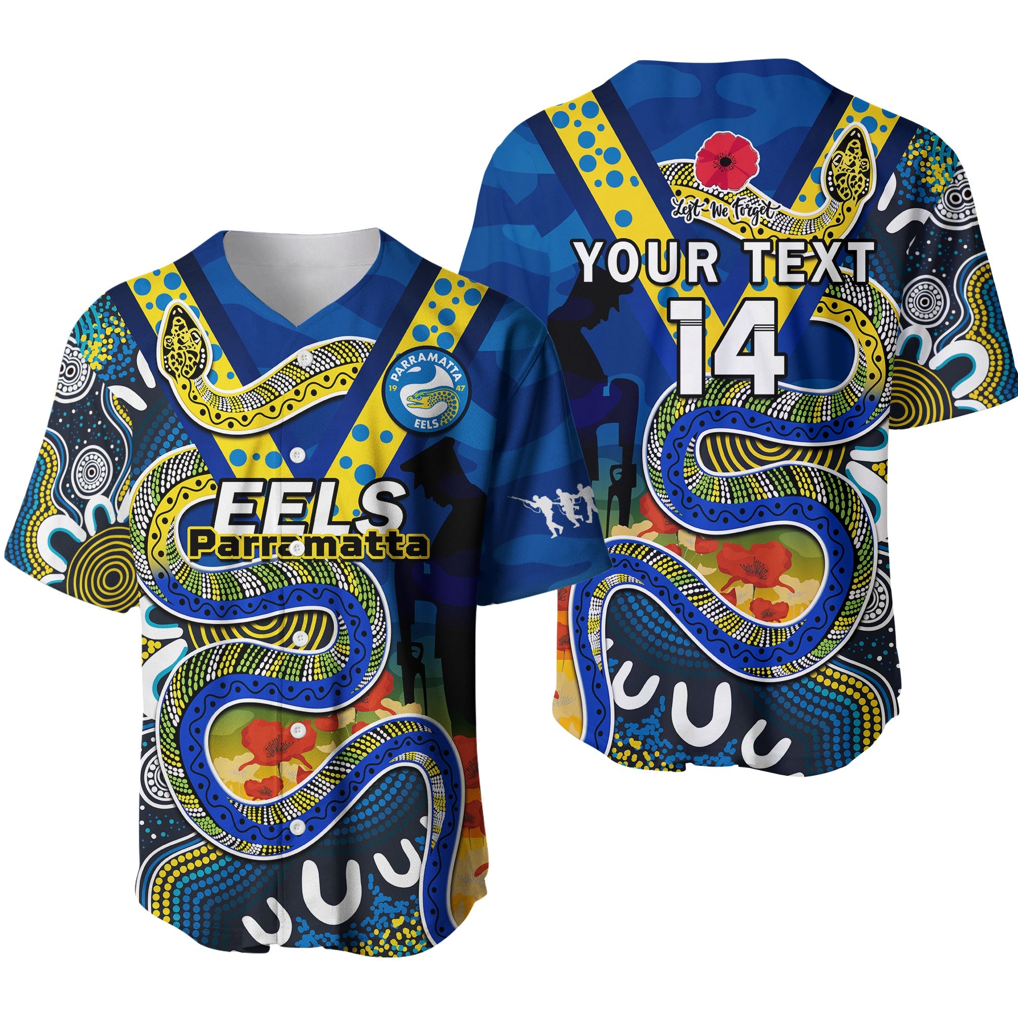 (Custom Text And Number) Eels Rugby ANZAC 2023 Baseball Jersey Aboriginal Mix Poppy Lest We Forget Ver.01 LT14