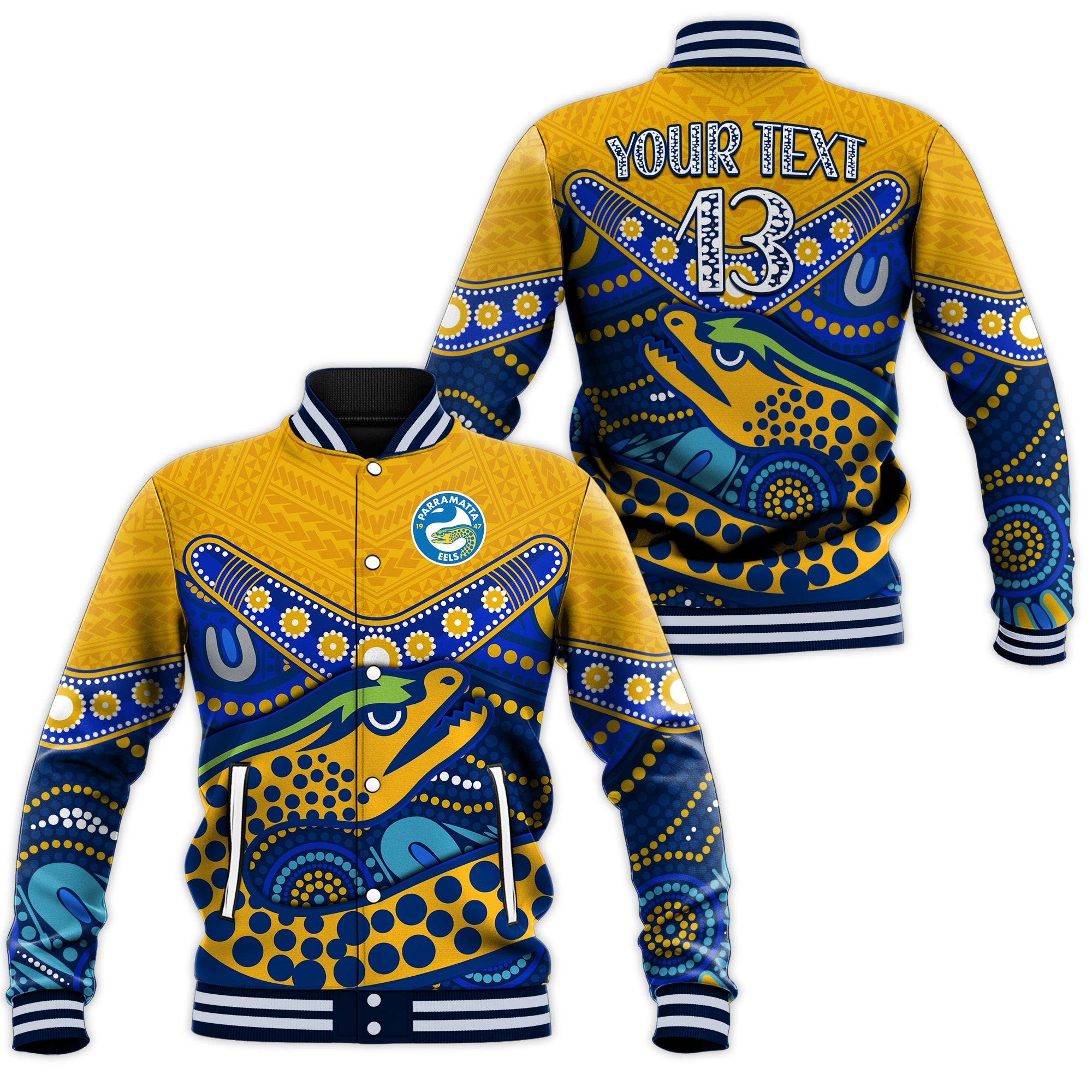 (Custom Text and Number) Eels Rugby Baseball Jacket Aboriginal and Polynesia Parramatta LT13