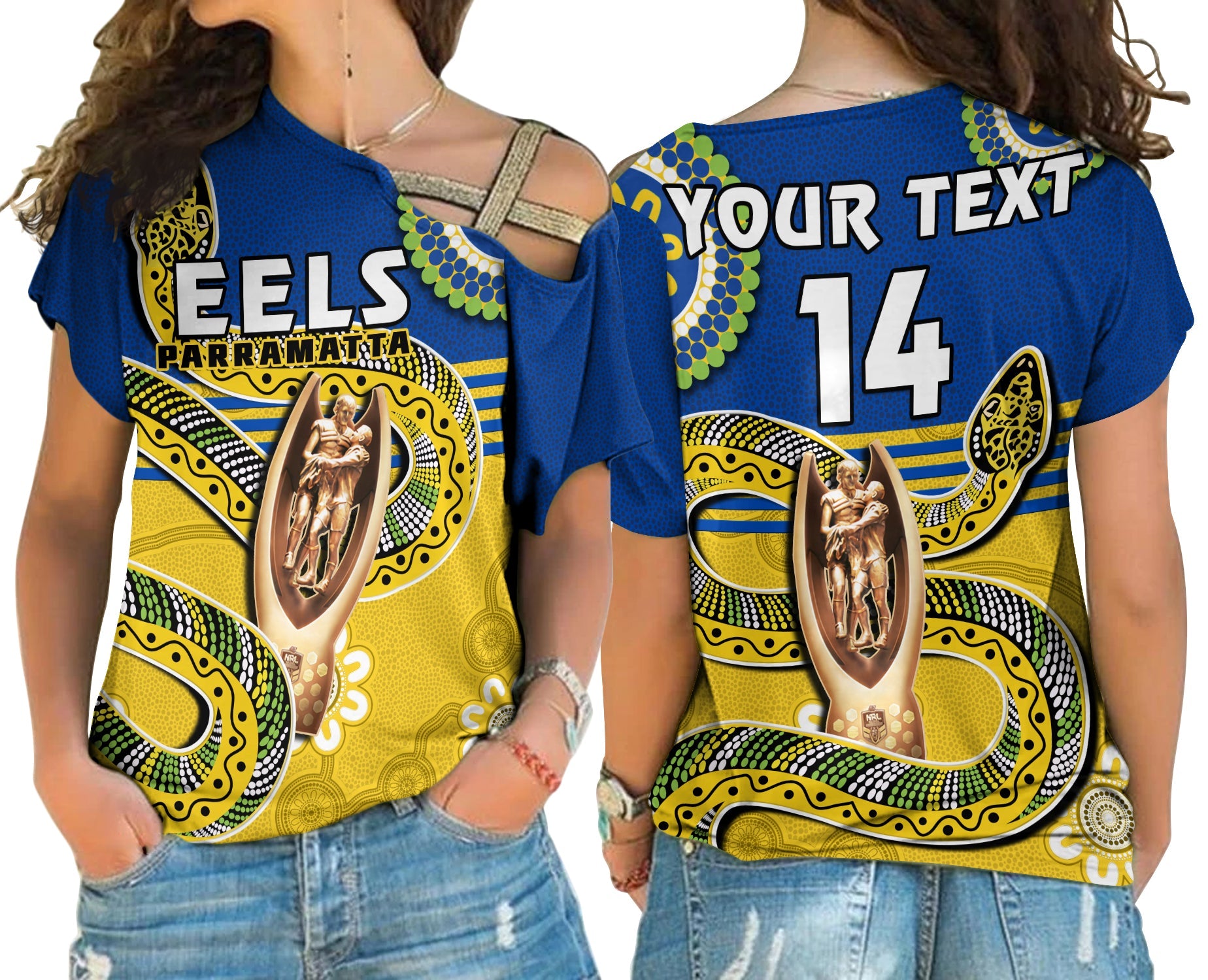 (Custom Text And Number) Eels Rugby Cross Shoulder Shirt Parra 2022 Indigenous Proud Premiers LT14