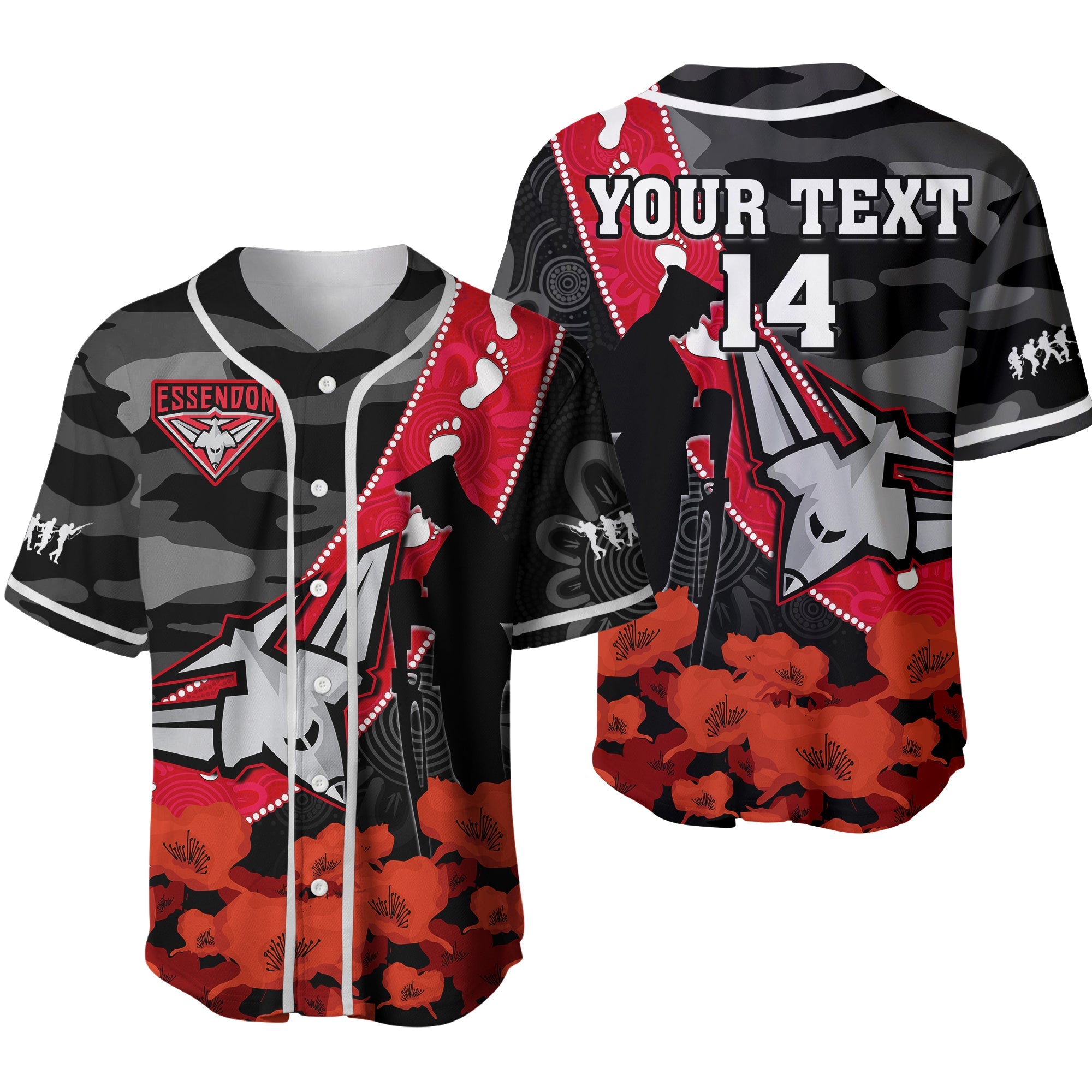 (Custom Text And Number) Essendon Football ANZAC 2023 Baseball Jersey Bombers Aboriginal Mix Poppy Camouflage Ver.02 LT14