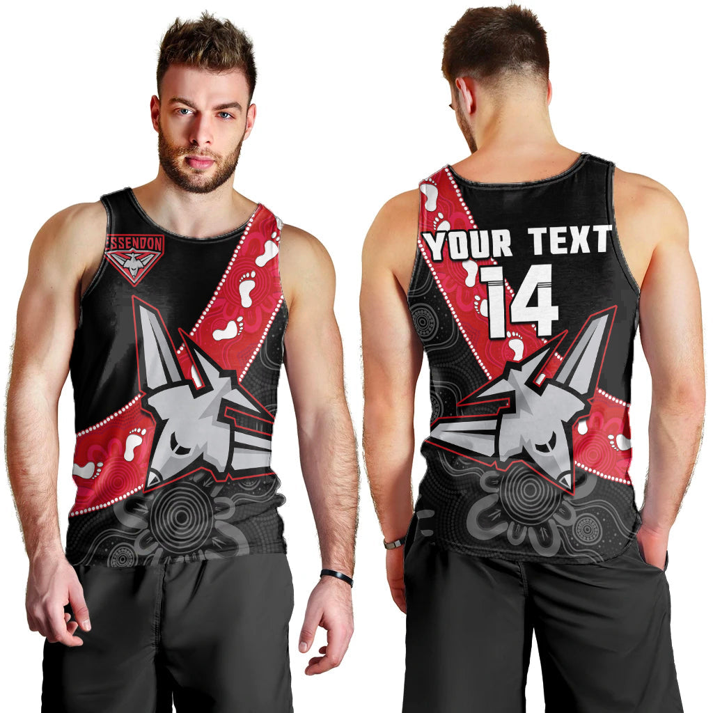 (Custom Text And Number) Essendon Football Men Tank Top Go Bombers 1872 Aboriginal Art LT14