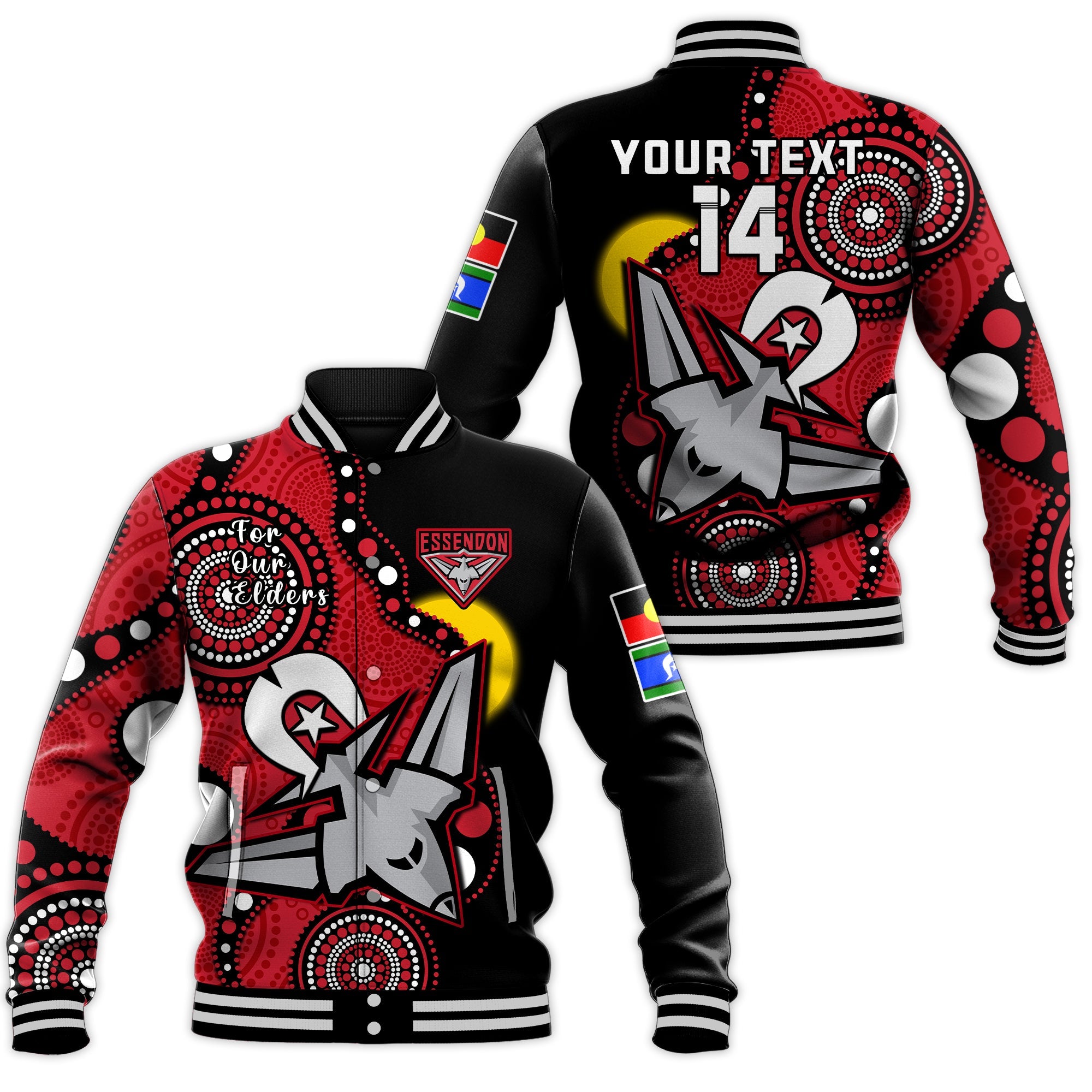(Custom Text And Number) Essendon Football NAIDOC 2023 Baseball Jacket Bombers For Our Elders Indigenous Art LT14