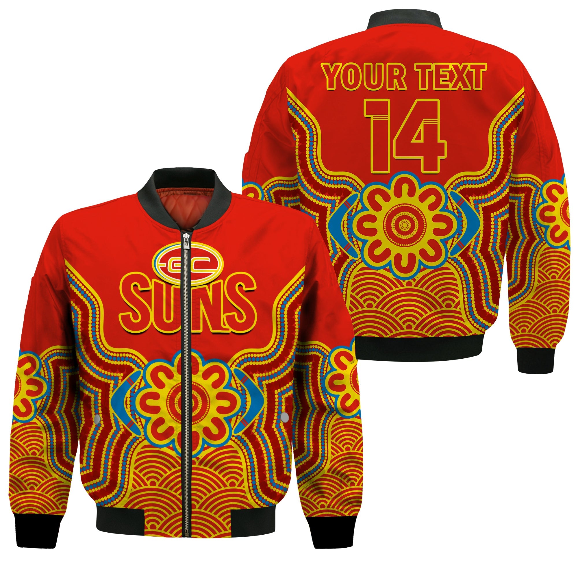 (Custom Text And Number) Gold Coast Football Bomber Jacket Suns Indigenous Pattern LT14