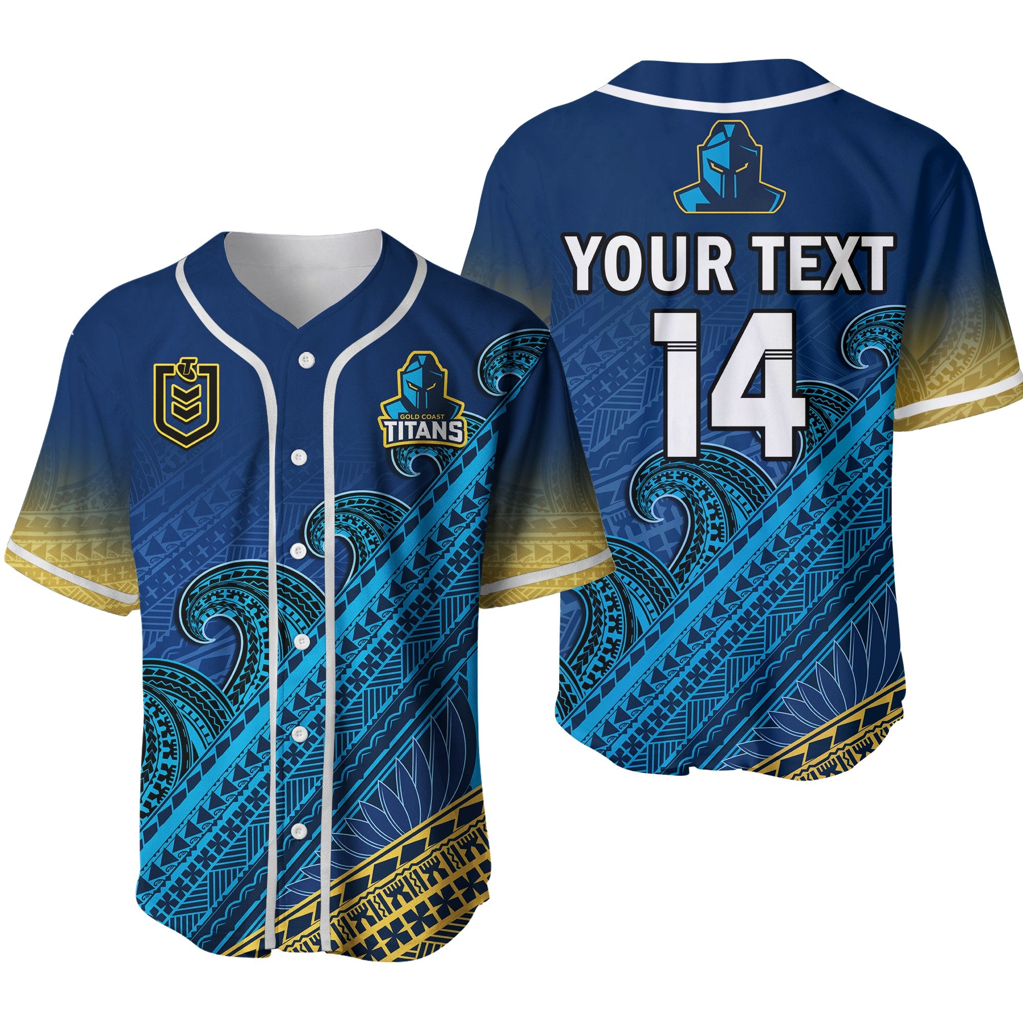 (Custom Text And Number) Gold Coast Titans Rugby Baseball Jersey Pasifika Gradient Polynesian Pattern Ver.02 LT14
