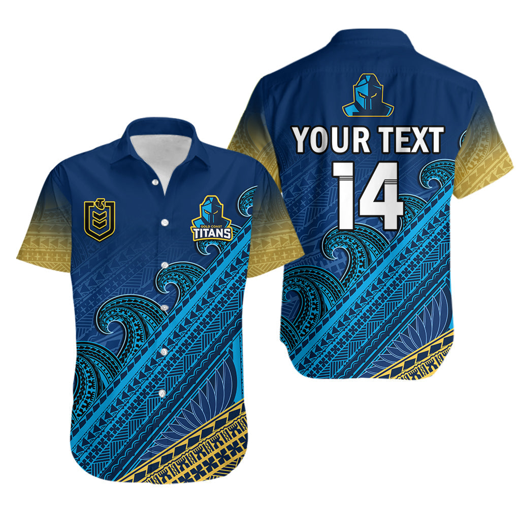 (Custom Text And Number) Gold Coast Titans Rugby Hawaiian Shirt Pasifika Gradient Polynesian Pattern LT14