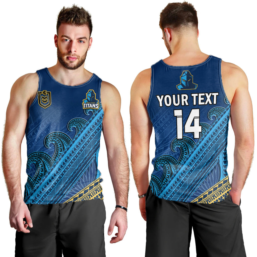 (Custom Text And Number) Gold Coast Titans Rugby Men Tank Top Pasifika Gradient Polynesian Pattern LT14