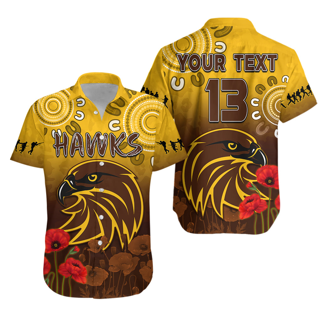 (Custom Text and Number) Hawks Anzac 2022 Hawaiian Shirt Hawthorn Football Aboriginal Poppy LT13