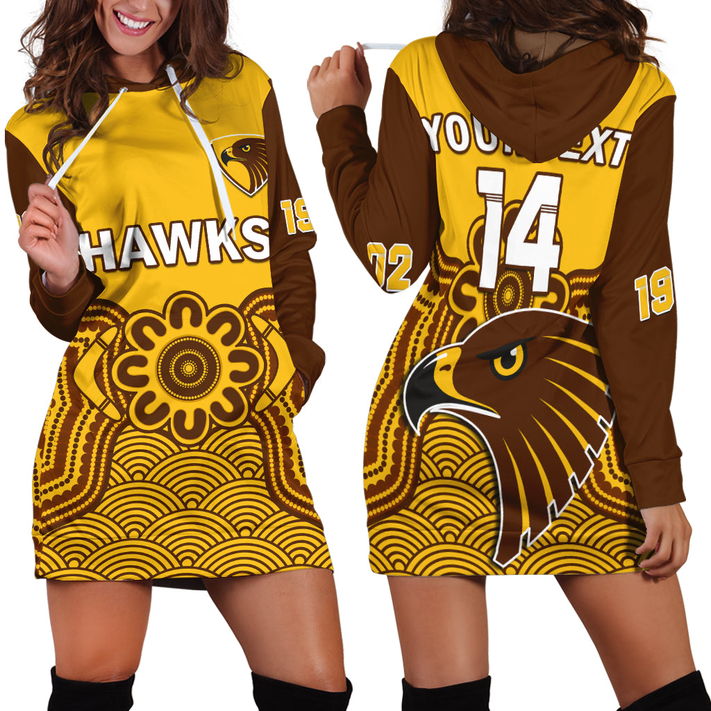 (Custom Text And Number) Hawthorn Football Hoodie Dress Go Hawks 1902 Aboriginal Art LT14