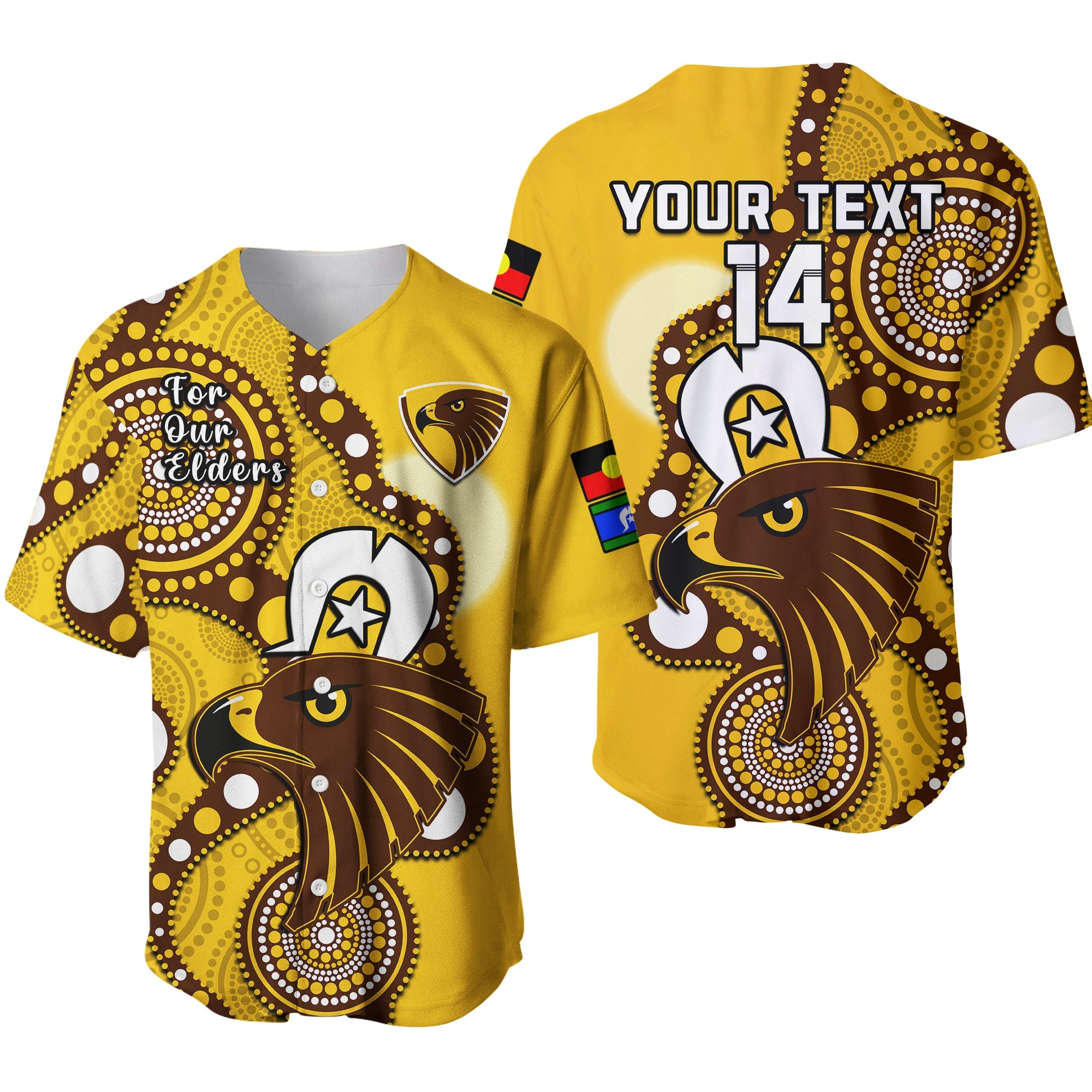(Custom Text And Number) Hawthorn Football NAIDOC 2023 Baseball Jersey Hawks For Our Elders Indigenous Ver.01 LT14