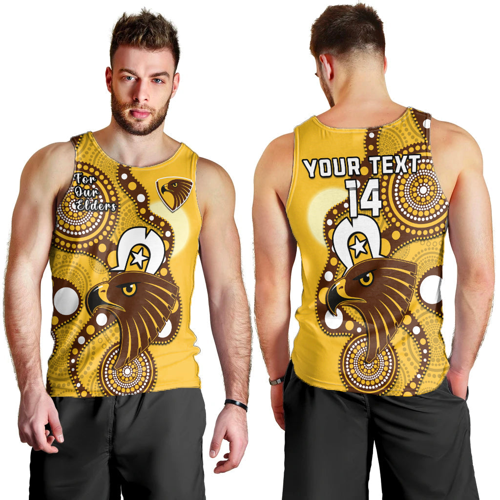 (Custom Text And Number) Hawthorn Football NAIDOC 2023 Men Tank Top Hawks For Our Elders Indigenous LT14