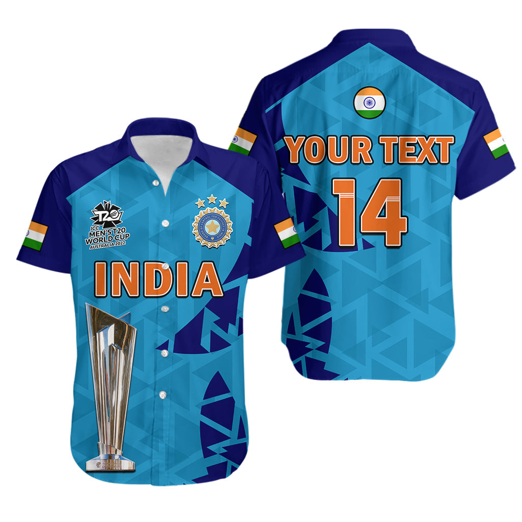(Custom Text And Number) India Cricket Hawaiian Shirt Men In Blue Champions Mens T20 WC 2022 LT14