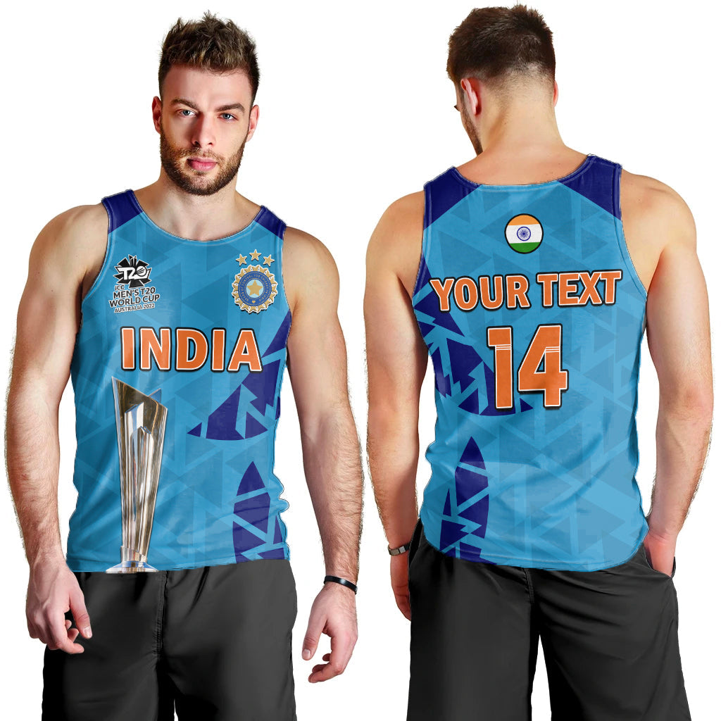 (Custom Text And Number) India Cricket Men Tank Top Men In Blue Champions Mens T20 WC 2022 LT14