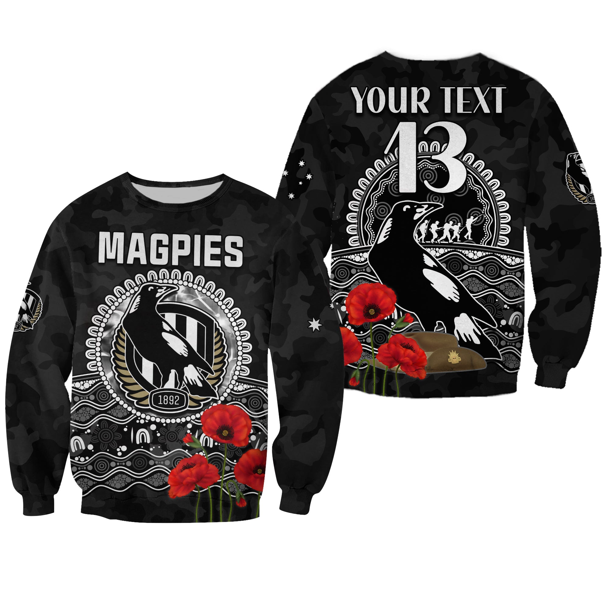 (Custom Text and Number) Magpies Football ANZAC Day Sweatshirt Speical Poppy mix Aboriginal LT13