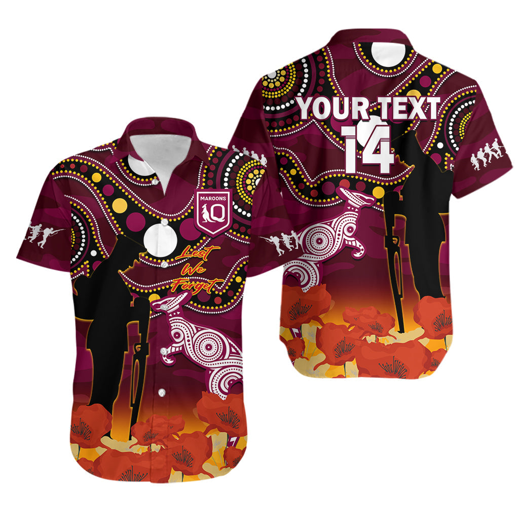 (Custom Text And Number) Maroons Rugby ANZAC 2023 Hawaiian Shirt QLD Aboriginal Mix Poppy Camouflage LT14