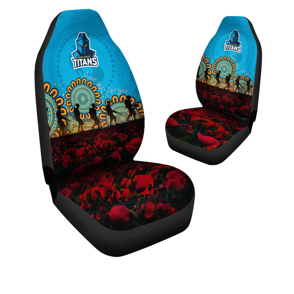 Gold Coast Titans Car Seat Covers Aboriginal Rugby Anzac Day Poppy With Soldiers- NRL LT10