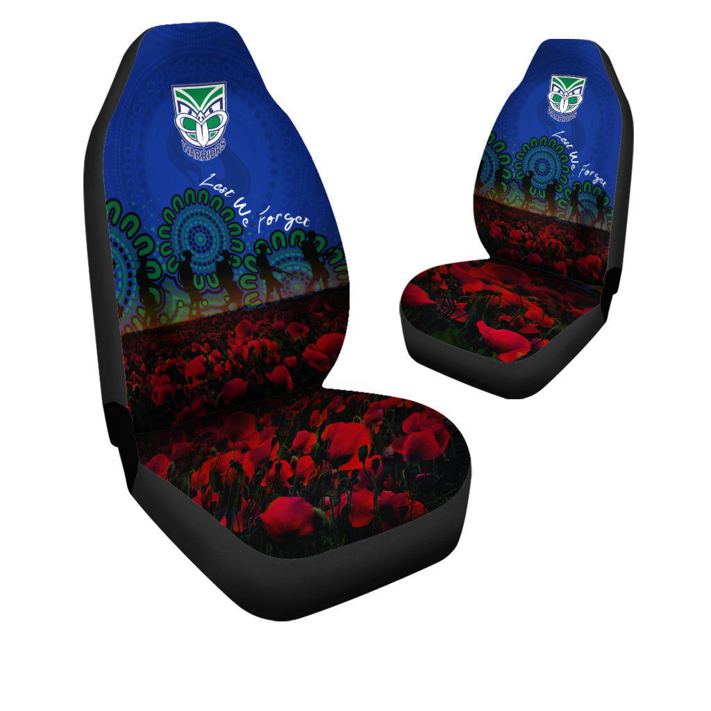 New Zealand Warriors Car Seat Covers Aboriginal Rugby Anzac Day Poppy With Soldiers- NRL LT10