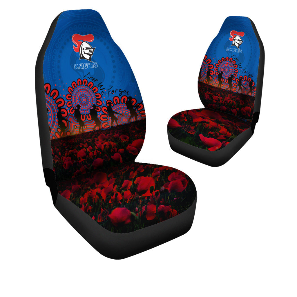 Newcastle Knights Car Seat Covers Aboriginal Rugby Anzac Day Poppy With Soldiers- NRL LT10