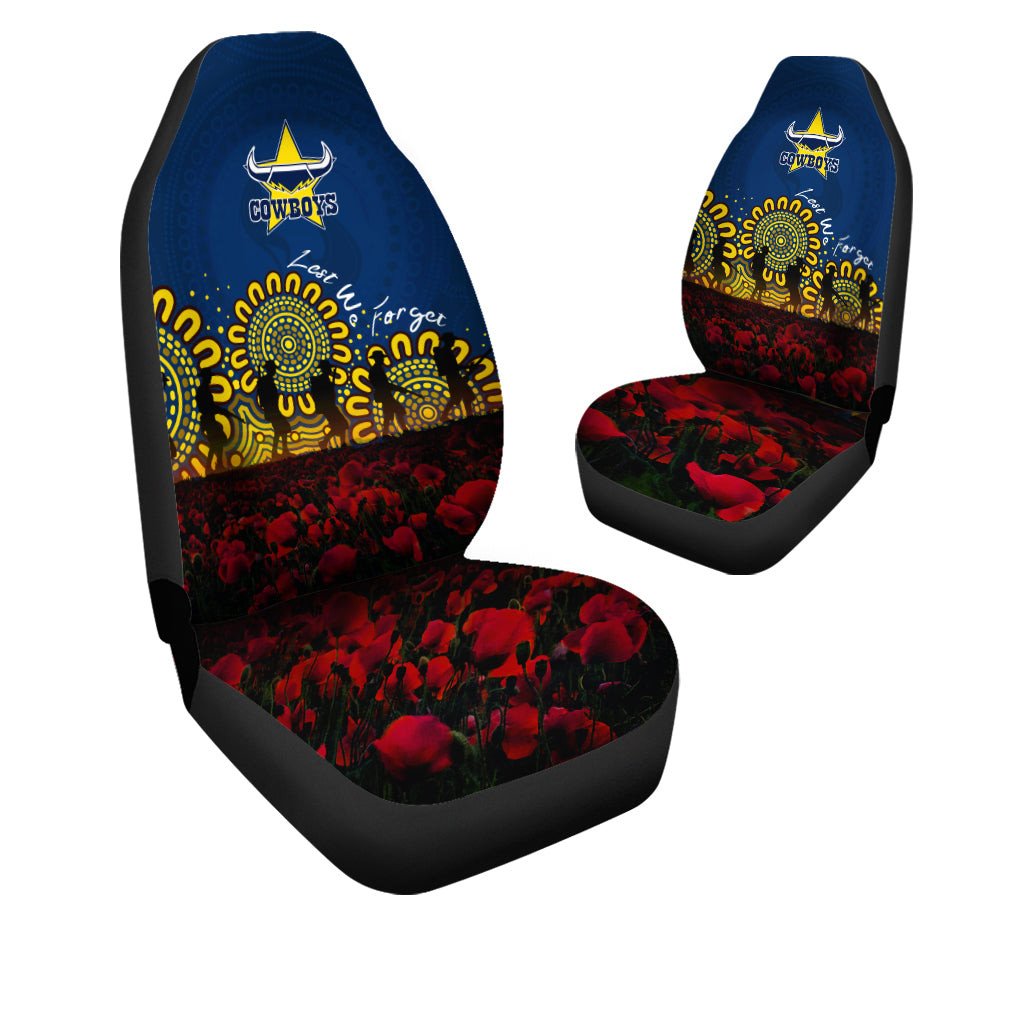 North Queensland Cowboys Car Seat Covers Aboriginal Rugby Anzac Day Poppy With Soldiers- NRL LT10
