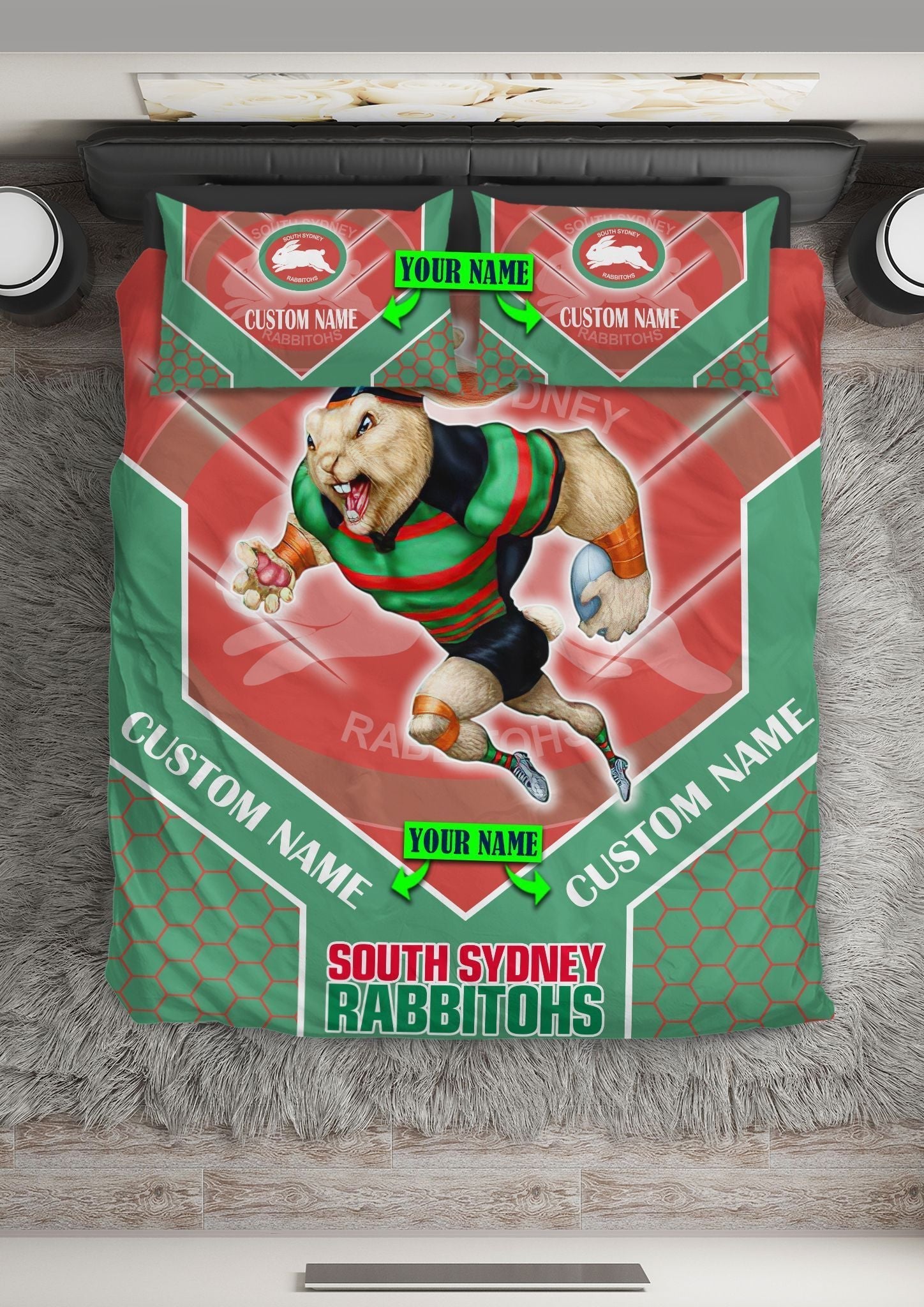 Nrl Bedding Set South Sydney Rabbitohs Bedding Set Mascot LT10