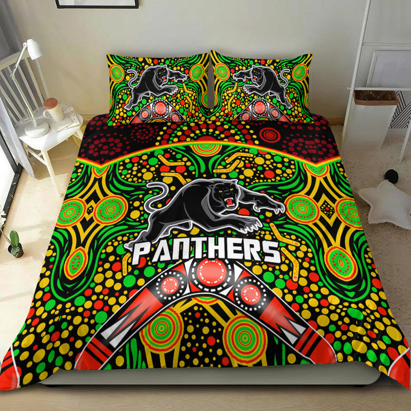 Panthers Rugby Bedding Set Boomerang Indigenous Dots LT9