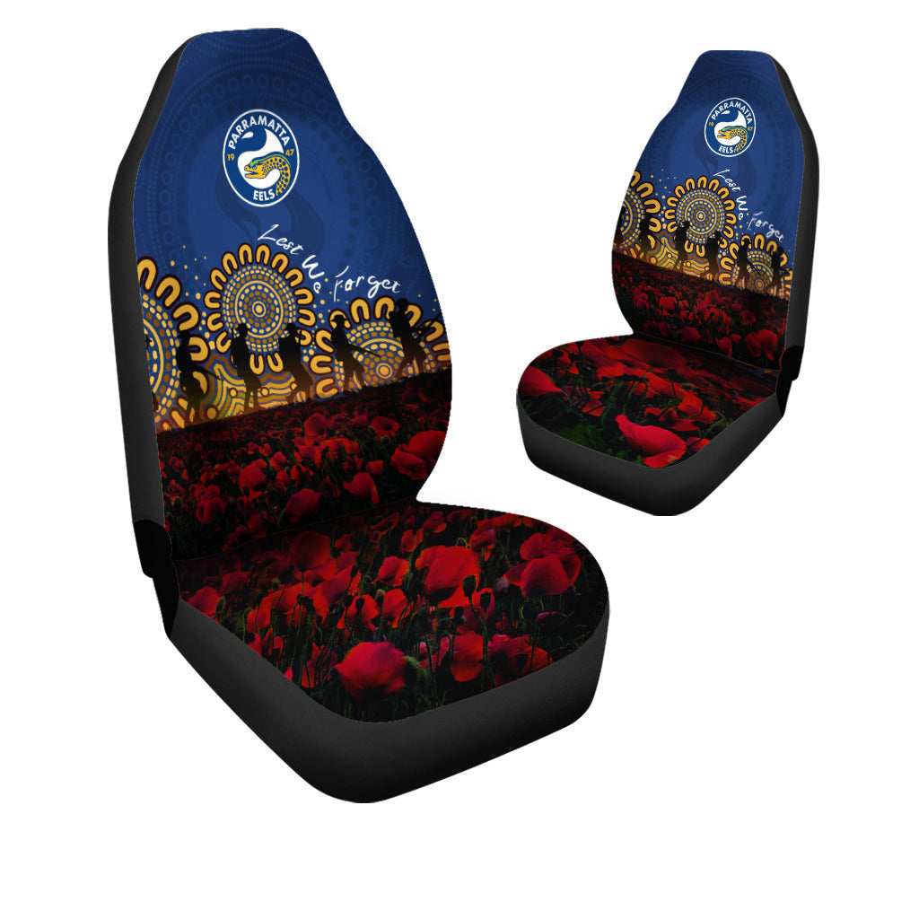Parramatta Eels Car Seat Covers Aboriginal Rugby Anzac Day Poppy With Soldiers- NRL LT10