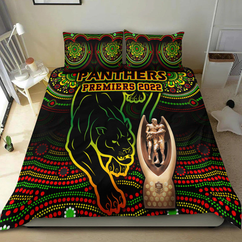Penrith Panthers Rugby Bedding Set Black Crouching Panther Premiers 2022 LT9