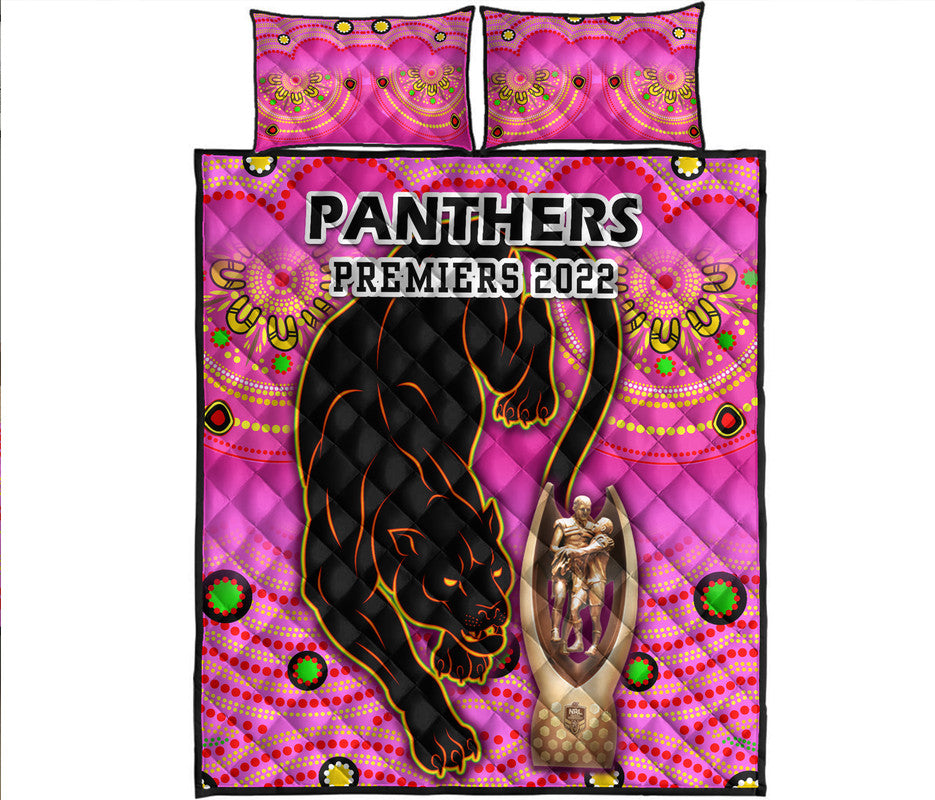 Penrith Panthers Rugby Quilt Bed Set Pink Crouching Panther Premiers 2022 LT9